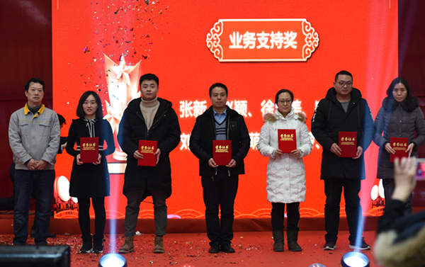 產(chǎn)業(yè)年會“頒獎典禮及迎新年會”在12日下午如期而至。焊機(jī)制作部首秀群舞《恭喜發(fā)財》。那紅火、熱烈、吉祥的氣氛立即嗨遍全場。時代各部門紛紛派出了自己的文藝明星登臺獻(xiàn)技。他們將各自的才藝及特長與公司文化相融合為時代同仁呈現(xiàn)了一場熱鬧、歡快的演出。隨著一浪高過一浪的微信抽獎活動,聯(lián)歡會現(xiàn)場達(dá)到沸點(diǎn)。一年一度的頒獎活動穿插在聯(lián)歡活動中逐一展開。一位位時代精英從領(lǐng)導(dǎo)手中接過令人艷羨的榮譽(yù),這是時代對辛勤勞動者的肯定和贊譽(yù)。聯(lián)歡會最后一曲合唱《明天會更好》表達(dá)了全體時代人對2019年的憧憬和渴望。時代科技2018年年終總結(jié)會暨2019年工作計劃會在響徹四方的嘹亮歌聲中落下帷幕。