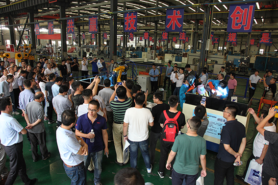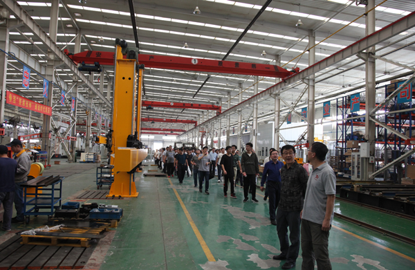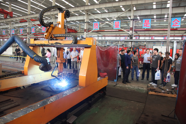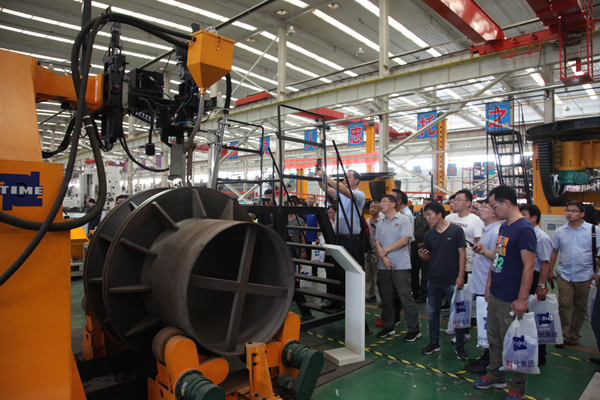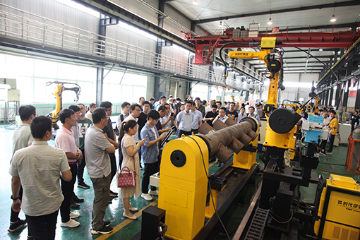 會議第一天的下午,全體代表乘車來到山東時代新紀(jì)元機器人有限公司及北京時代濟南焊接工業(yè)園參觀。時代機器人公司同仁為各位代表展示了機器人焊接技術(shù)在典型結(jié)構(gòu)件焊接中的應(yīng)用實例。時代展示的產(chǎn)品包括:相貫線管道焊接機器人、200公斤雙軸變位機配8軸聯(lián)動相貫線焊接機器人、車廂板焊接機器人、鋁合金焊接機器人等。產(chǎn)品展示中還安排了人工焊接與機器人焊接的競賽吸引眾多代表圍觀,最終機器人方以工作速度快,焊縫成形美觀等優(yōu)勢勝出。在時代焊接工業(yè)園,各位代表參觀了時代自動焊設(shè)備生產(chǎn)線及焊機裝配生產(chǎn)線,同時還觀看了時代自動焊割設(shè)備表演。通過現(xiàn)場參觀和溝通。專家們對時代產(chǎn)品有了更加全面的了解和認(rèn)識。同時,他們期待著與時代公司在特種設(shè)備焊接技術(shù)方面進行更深入和更廣泛的交流及合作。