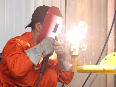 參賽選手在工件試焊 |