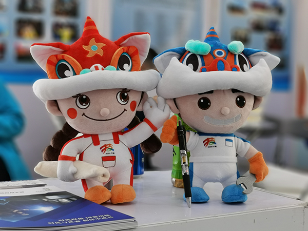 大賽吉祥物“揚(yáng)揚(yáng)”和“悅悅” | 吉祥物迎接四方來(lái)賓 |