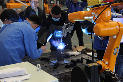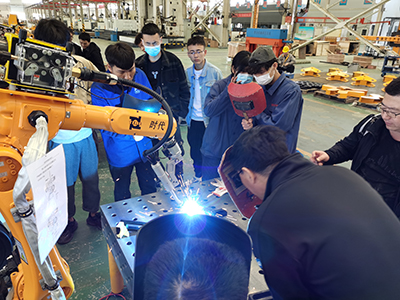 2021年4月26日,北京時(shí)代科技股份有限公司組織開(kāi)設(shè)的2021年第一期手工+機(jī)器人焊接技能提升班在濟(jì)南時(shí)代焊接工業(yè)園開(kāi)課了。全部課程為期5天,授課方式為技師現(xiàn)場(chǎng)授課、學(xué)員實(shí)操焊接練習(xí)。本次課程是時(shí)代公司精心籌劃的一個(gè)提升焊接專(zhuān)業(yè)學(xué)員機(jī)器人操作水平的培訓(xùn)課。授課老師均為時(shí)代公司高級(jí)焊接技師。培訓(xùn)設(shè)備為時(shí)代6公斤弧焊機(jī)器人、時(shí)代PNE61-400氬弧手工兩用焊機(jī),時(shí)代全數(shù)字TDN 5001MB氣保焊機(jī)、A160-350半自動(dòng)氣保焊機(jī)等。參加培訓(xùn)的學(xué)員全部為國(guó)內(nèi)職業(yè)院校系統(tǒng)內(nèi)的年輕學(xué)員和教師。本次培訓(xùn)內(nèi)容主要以實(shí)際操作為主,焊接理論為輔。實(shí)操內(nèi)容包括焊條電弧焊、熔化極氣體保護(hù)焊、鎢極氬弧焊和機(jī)器人熔化極混合氣體保護(hù)焊等。