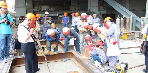 獻(xiàn)藝活動(dòng)結(jié)束之后,時(shí)代公司高級(jí)技師張自祥和另外兩名全國(guó)五一勞動(dòng)獎(jiǎng)?wù)芦@得者在工地現(xiàn)場(chǎng)根據(jù)施工方的要求,還做了板對(duì)接橫焊、立焊和平焊示范演示,與承建方焊工師傅們進(jìn)行了面對(duì)面交流,掀起了新一輪學(xué)習(xí)、交流的熱潮。