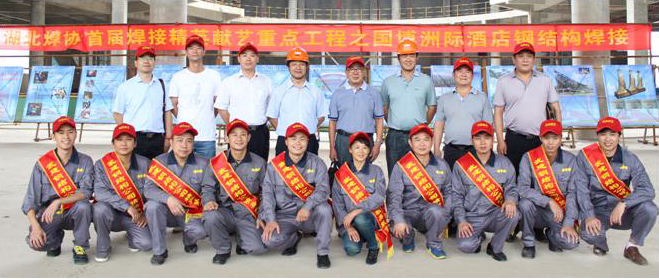 湖北省職工焊接技術(shù)協(xié)會(huì)首屆焊接精英獻(xiàn)藝武漢國(guó)博中心“洲際酒店”鋼結(jié)構(gòu)焊接活動(dòng)于8月31日隆重舉行,位于武漢國(guó)博中心的“洲際酒店”是武漢市重大重點(diǎn)工程項(xiàng)目,由武漢建工總承包。該酒店工程獨(dú)特設(shè)計(jì)的連廊“星空會(huì)所”(距地面約100米高) 呈橢圓形鋼結(jié)構(gòu)建筑,總重量約1400噸。材質(zhì)為Q345B、Q390B,板厚20~130mm,全部采用藥芯焊絲CO2氣體保護(hù)焊工藝方法焊接。 由于構(gòu)件呈橢圓形結(jié)構(gòu),接點(diǎn)各異;加之又多是中厚板焊接,焊縫質(zhì)量都要求達(dá)到1級(jí)焊縫,無(wú)疑增加了焊接難度。10位一線焊接勞模、技術(shù)能手按照該工程技術(shù)要求對(duì)九個(gè)異形接點(diǎn)進(jìn)行施焊。焊接設(shè)備采用時(shí)代A160-500氣保焊機(jī),焊絲采用藥心焊絲。時(shí)代公司高級(jí)技師張自祥代表公司出席了這次活動(dòng),與其他9位焊接精英共同完成這次任務(wù)。