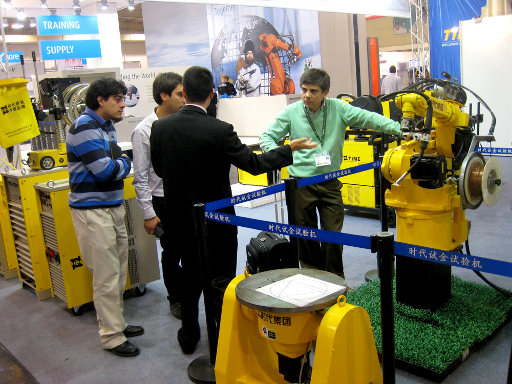 從2001年到2013年,時代公司連續(xù)參加了4屆德國埃森焊接展會。時代的展臺面積不斷加大,展品不斷創(chuàng)新,展品數(shù)量不斷增多。本屆展會時代公司展臺面積為54平米并進行了特裝布置。在展會上時代公司重點展示了新型全數(shù)字焊機,交直流雙絲埋弧,焊接機器人等產(chǎn)品。展品受到了現(xiàn)場觀眾的極大關(guān)注。從產(chǎn)品性能參數(shù)到外觀到價格,觀眾們都詳加詢問。不時有觀眾索要資料并拍照。高端產(chǎn)品以及智能化、自動化產(chǎn)品將是未來時代公司的主流產(chǎn)品。在這6天展會中,共有36個國家和地區(qū)的觀眾到時代展臺參觀交流。另外,還有來自世界各地的代理商參觀了時代展臺并進行洽談。由于全球經(jīng)濟形勢持續(xù)低迷,所以本次展會總展位面積有所減少。原來預計參觀人數(shù)會減少,但是根據(jù)展后統(tǒng)計看,來時代展臺參觀交流的觀眾、代理商還是較多的。