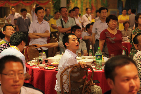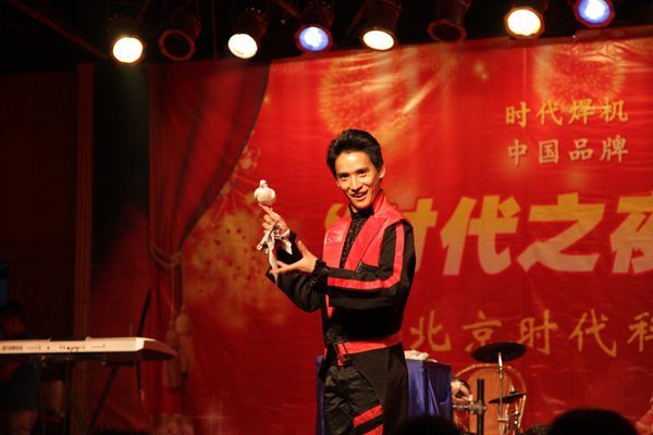 本次時代之夜活動廳堂布置以紅色調(diào)為主,襯托出活動熱烈喜慶的氣氛。宴會現(xiàn)場高朋滿座,勝友如云,宴席前面寬大的表演舞臺上精彩節(jié)目輪番上演。許多節(jié)目演到高潮的時候,觀眾都紛紛從餐桌旁站起來舉起手機(jī)拍攝那精彩的瞬間。激動人心的抽獎環(huán)節(jié)調(diào)動了所有人的神經(jīng),大家都期待著大獎能落到自己手中,但獎品畢竟有限,來自某地區(qū)某單位的來賓抽中了最后的大獎。一位外國朋友在抽獎活動中也成功中獎。