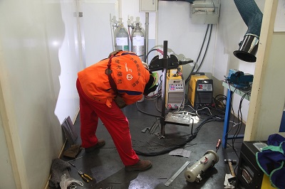 本次大賽的比賽內(nèi)容,在題目上較上一屆難度有所增加。理論試題是在十套題庫中抽出一套作為比賽試題,雖然如此,在理論試題考試現(xiàn)場,開考才十分鐘便有幾個學生答題完畢,可見選手準備很充分。實操考試,69名選手分兩輪進行比賽,需在4個小時之內(nèi)完成三組項目的打磨、組對、焊接、清理工作,意味著選手的操作需更加敏捷、流暢,對選手提出了更高的要求。賽題難點為仰焊、管板和管管焊接。雖然仰焊難度較大,但歷屆大賽手工焊條仰焊項目都必不可少,各家均已基本充分掌握技術,因此仰焊項目成績應該都不會特別差。管板和管管焊接雖然難度也較大,但好在是全氬焊接,管板焊接由于夾角較深,要想保證全部熔透不出現(xiàn)凹陷,難度還是有的。以上兩項可能會在比分上拉開距離。第三項是手工焊條仰角焊和氣保立焊。這里著重講氣保焊接。對于氣保焊接立焊,首先以電流電壓匹配得當為前提,在打底時主要是為了保證背面焊透,但在打底階段采用之字形行走的方法,擺在間隙的兩面較多則很難使背面的焊縫凸出,如鈍邊較?。?/span>0.5mm以內(nèi))操作得當可焊平或凸出0.5mm左右,如果擺動寬度較大就會出現(xiàn)凹陷等缺陷,如不加擺動直推或小幅擺動,雖然能保證背面成型,但焊縫的正面會出現(xiàn)焊縫中間較高有少許夾溝。如不加清理即填充會引起熔合不好。所以它的難度綜合講就是,由于采用的是小電流焊接,在保證背面成型的基礎上,還要保證正面每一層焊縫的平整度,以免在填充和蓋面過程中出現(xiàn)夾渣、未融合等缺陷。