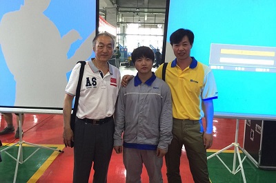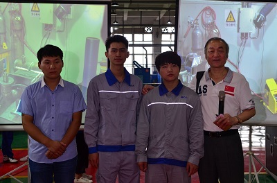 圖4:時代首席高級技師(右)與焊接專家(左)、世界冠軍曾正超(中)
