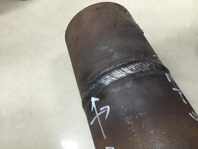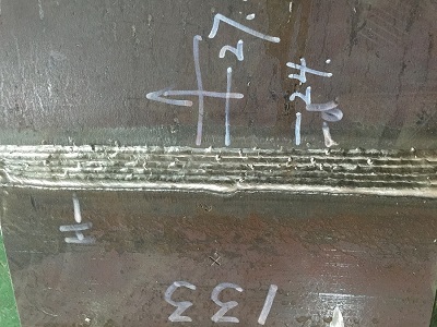 第一模塊由四組低碳鋼試件組成,10mm對接仰焊板(如圖1)、管管對接45度固定(如圖2)、16mm板橫焊(如圖3)和板立角焊(如圖4),焊接方法要根據(jù)抽簽確定,這四組低碳鋼試件中,從技術(shù)層面上講,全手工焊條焊接的仰焊板和45度管管對接焊難度較大,由于仰焊板在歷屆焊接技能大賽的賽項上都必不可少,所以在操作技能上各家都有所掌握,所比的是誰家的基本功更扎實,技術(shù)掌握得更到位。45度管管對接電弧焊的難點個人認(rèn)為有兩點,第一是打底階段每一個接頭的處理及焊接后在保證背面成型好的基礎(chǔ)上,焊縫正面是否有較深夾溝或焊肉下垂的現(xiàn)象,從而影響蓋面后的焊縫內(nèi)在質(zhì)量。第二個難點是蓋面焊接要做到焊縫對咬邊的控制,通過焊接過程中的斜拉擺動來控制好熔池走向,使焊肉不出現(xiàn)下垂和咬邊。從本次大賽的45度管管焊的總體成績來看,由于焊接過程中允許進(jìn)行電動工具打磨處理,所以對于內(nèi)在質(zhì)量的控制都做得還不錯,65名選手中射線探傷0分的只有8人。選手中外觀分?jǐn)?shù)丟分的較多,滿分50分中,最高得分也只有36分,可見該項目還是有一定的難度。